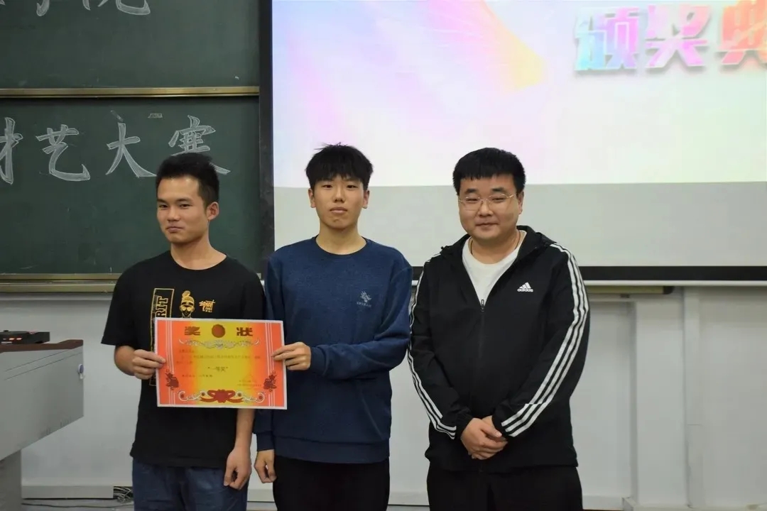 在本次新生才艺大赛临近结束之际,比赛结果公示。由老师们逐一上台为表演者颁奖。最后,团委书记于帅帅老师上台总结发言。他表示,20级的新生们多才多艺,非常优秀,这点值得肯定。希望大家能继续积极参加各种丰富多彩的活动,丰富大学生活。忘掉烦恼,忘掉生活中的不愉快,就在今晚,玩得开心!
