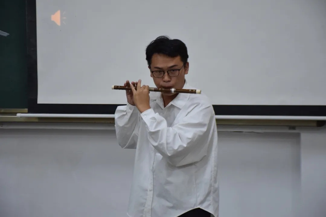 笛子独奏《扬鞭催马运粮忙》,一阵急促的旋律触动着观众们的内心,一副骏马在无垠的草野上忘情地驰骋的画面呈现在眼前,悦耳的笛声就像气势磅礴的风在大厅里回响。