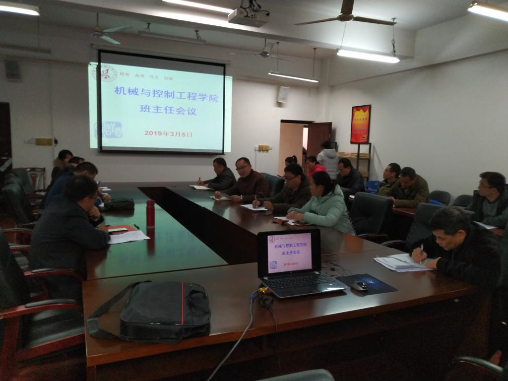 会上,耿俊茂副书记首先向各位班主任传达了学校2019年学生工作务虚会精神,并就我院学生工作如何落实学校学生工作务虚会精神提了几点想法和要求:一是要突出机控的品牌特色,以建院十周年为契机,在科技活动、创新创业、社会实践、志愿服务等方面下功夫,打造一批在全校具有影响力的机控品牌特色活动;二是要以学风建设为主线,主抓课堂和宿舍两大阵地,努力实现四级考核目标;三是以赛促学,提高学生学科竞赛参与率,实现“一人一技,一人一能”,增强学生专业核心竞争力;四是成立扶志办公室,启动扶志工程护航困难学生群体,推动关注一切学生再上新台阶;五是实施“党建+”系列引领帮扶计划,推进服务型组织建设新跨越。