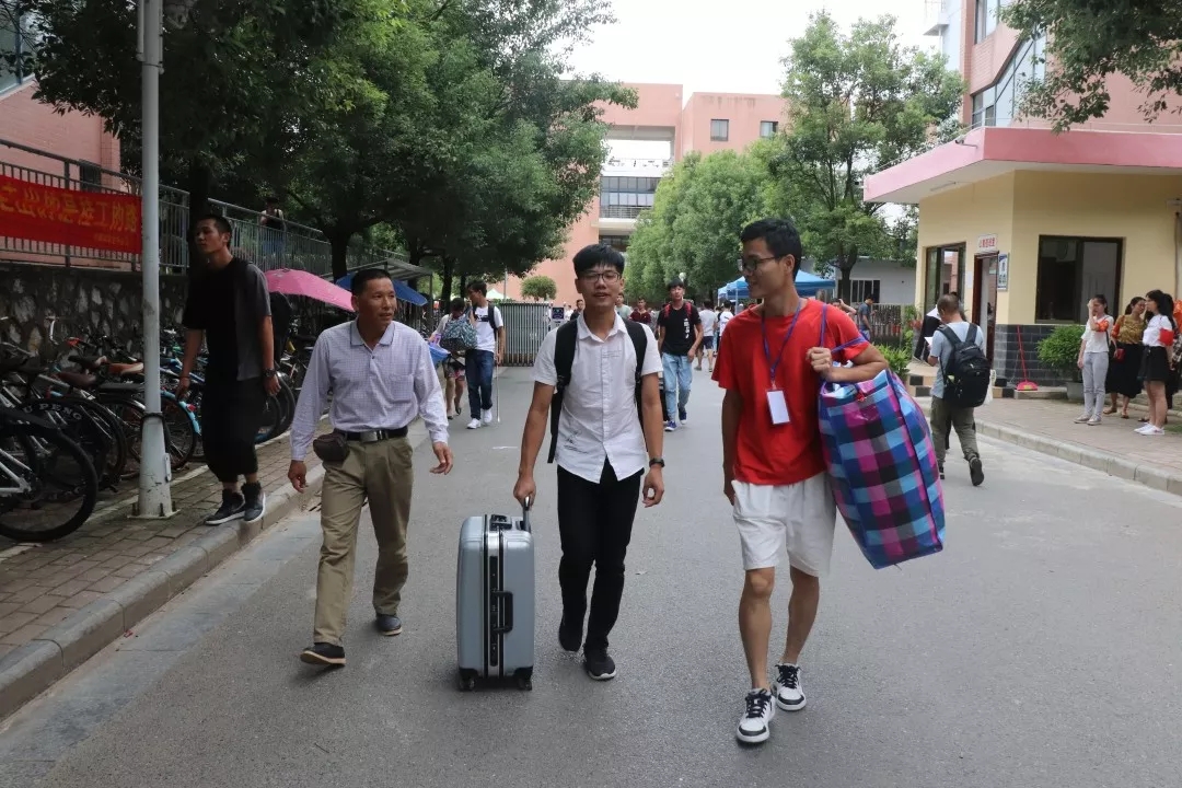 志愿者给新生带路,提东西