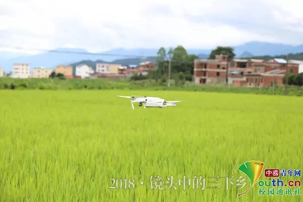 实践团成员操作无人机查看农作物情况。中国青年网通讯员 杨锡坚 摄
