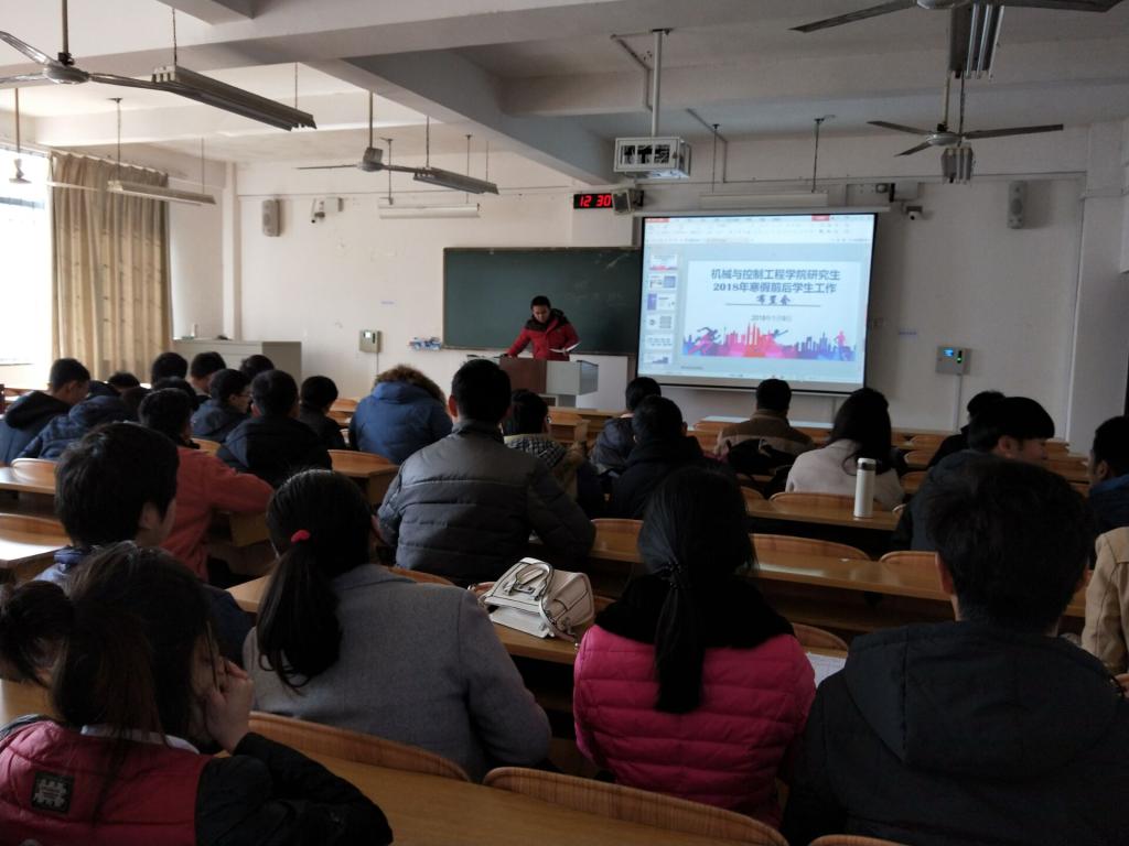 1月9日,机控学院在06102教室召开了研究生2018年寒假前后学生工作布置会。机控学院全体研究生参加了会议。会议由学院研究生辅导员黎云鹏老师主持。