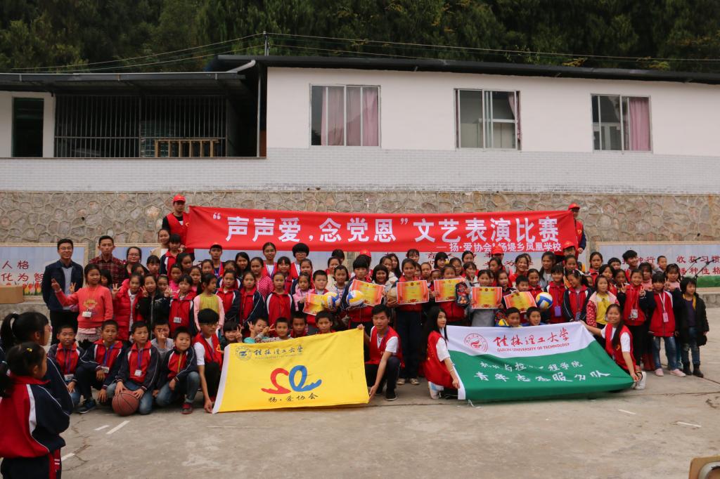 礼赞十九大,关爱少年儿童的教育和成长。2017年11月28日,在桂林理工大学机械与控制工程学院辅导员、杨.爱协会指导老师黎云鹏老师的带领下,扬爱协会、机控学院和信息学院的大学生党员、志愿者们来到了凤凰学校和中南小学,进行了走访志愿服务活动。