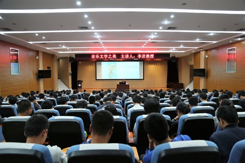 讲座开始,李君教授和同学们互动,感受一下音乐美,并建议同学们在平时繁忙学业中,去学习一下艺术,在音乐中陶冶自己的情操。接着,李君教授向同学们解锁音乐文学的含义,通过形象、具体地反映社会生活,表达作者思想感情。随后李君教授又以古代诗词为引,导出了古代文学与音乐的联系,与近代做出对比,将音乐与文学彻底的绑在了一起,同时先后讲了田汉,聂耳等几位伟大的音乐家,给在场同学对音乐家有了更深入的认识。最后,讲座在《习近平和彭麻麻》的歌声中圆满结束。