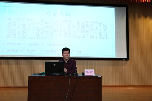 为激发同学们对音乐的热爱,感受音乐的魅力,10月17日下午,我院有幸邀请到来自艺术学院的李君教授在雁山图书馆报告厅作“音乐文学之美”的讲座。学院党委邓洁琼副书记出席并主持了本次讲座,学院16级、17级学生参加了本次讲座。