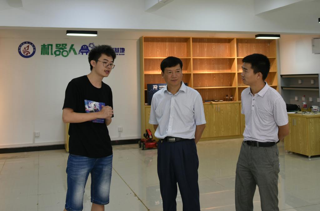 7月14日上午,学校解庆林校长在党校办、学工部(处)、团委与我院党政主要负责人的陪同下,来到我院机器人创新实践基地,亲切看望慰问了暑期留校备战全国机器人大赛的师生,为他们送去诚挚的问候和祝福。