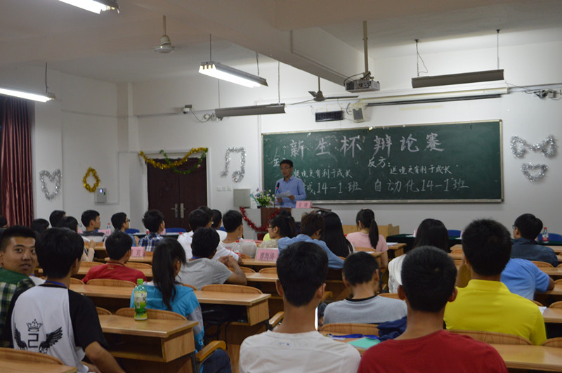 10月25日晚,我院“新生杯”辩论赛在06301隆重举行,学院13级辩论队主力邵雨、黄忠平等人担任评委,特邀了院团委学生会主席马婕、团委副书记段鹏出席嘉宾。14级苗泽以及李梦主持了辩论赛。