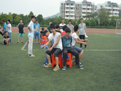 开幕式上邓老师发表致辞,并预祝运动会取得圆满成功;裁判员代表、运动员代表宣誓完后比赛正式开始。本届运动会以“团结共进,激扬青春”为主题,比赛项目趣味性十足,竞技性强,涵盖了包括“100米、助跑跳、抢椅子大战、拔河、两人三足、20×50接力、跳大绳、400米、奔跑吧机控”等九个重点比赛项目。趣味比赛不同于体育竞技,它更加注重对学生兴趣和个性的培养与发展,为每个学生搭建了历练自我的平台,为此学生的参与热情格外高涨。20×50迎面接力赛上,运动员们相互合作,你追我赶,斗志盎然;100米、400米、助跑跳、等现场如火如荼,他们奋力拼搏、斗志昂扬,在跑道上健步如飞,在沙丘前中凌空一跃;拔河场上,同班同学高声呐喊,节奏一致,尽显团结;两人三足中,大家默契配合,同进共退;抢椅子大战,参赛队员们整装待发,现场气氛激烈活跃,抢不到座位的同学虽然略显尴尬,但还是欢笑一片,其乐融融……经过一天的赛程,机械14-1班和机械13-3班并列团体第一名,四个精神文明奖和若干项个人单项奖也花落有家,最后邓老师做了闭幕致辞,本届趣味运动会圆满落下帷幕。