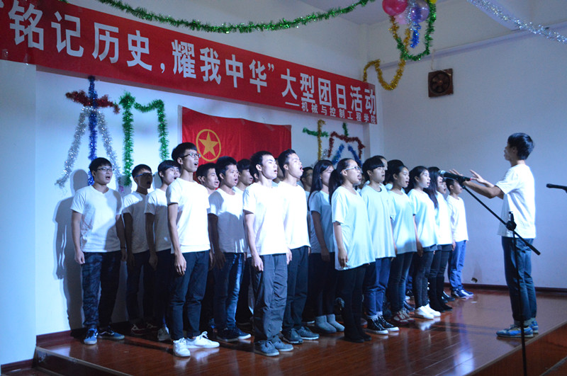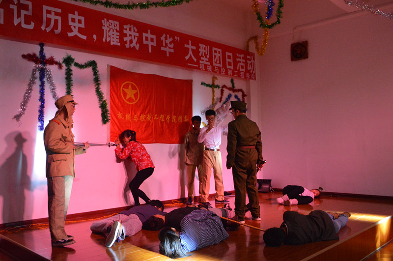 首先,刘金良老师为本次团日活动致开幕辞。然后,合唱团为大家带来《中国共产主义青年团之歌》,全体肃立,齐唱团歌。之后的节目,经典的诗朗诵《黄河颂》,展示了黄河桀骜不驯的血性和中华民族的英雄气概;精彩的话剧表演《虎门销烟》,传民族英雄林则徐大义凛然之气;小品《英雄儿女》,扬革命英雄顽强不屈之威;话剧《南京魂》,揭露了日军的暴行;歌曲《走进新时代》,歌颂了新中国成立后的巨大改变。一个个节目使得同学们赞口不绝。活动最后,同学们在活动中心一楼进行了 “运输炸药包”、“狼牙山五壮士”、“鬼子进村”等趣味游戏,斗智斗勇的班级比拼激起了同学们的巨大热情。