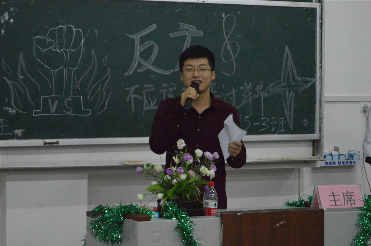 第一场决季军赛,正方自动化15-1班对决反方自动化15-2班,正方观点“爱一行,干一行”,反方观点为“干一行,爱一行”,双方辩手唇枪舌战,雄辩滔滔,赢得了台下一次又一次的掌声,最终自动化15-1班获得“新生杯”辩论赛季军。8:15分,万众期待的冠军总决赛正式开始。机械15-2班与自动化15-3班的班级辩论代表队就“是否应该支持过洋节”展开精彩的辩论。正方辩手提出“过洋节能丰富文化生活”,因此应该支持过洋节,反方以“中华文化受到空前挑战”为据反驳。最终,经过评委的认真评定,本次机控学院“新生杯”辩论赛冠军得主为机械15-2班班级辩论代表队。