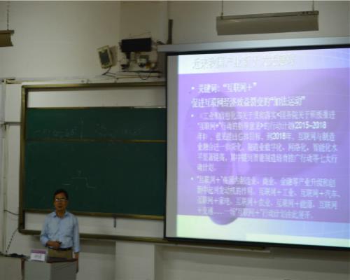 首先,刘教授就中国近年产业的十大关键词介绍中国制造业的情况,继而同学们介绍当代工业制造的形式—智能化、自动化,通过实例来论证工业4.0时代的不同,如工业1.0时代的蒸汽机,工业2.0时的机械制造,工业3.0时代的电脑与机械相结合。然后,刘教授向我们介绍数字化时代的影响和技术体系,如产品的质量和数量、汽车的数字化等。最后,刘教授分析国外现有制造业的压力与忧虑,针对我国制造业现存的问题与改进的措施进行详细的讲解。