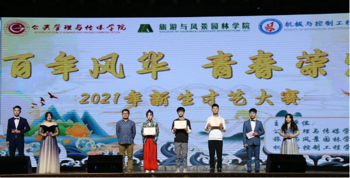 为了给新生展示自我、拥抱青春的机会,让新生更好地融入到大学生活,2021年11月5日晚,我院与管媒学院、旅游学院在新体育馆联合举办2021“百年风华 青春荣发”新生才艺大赛。
