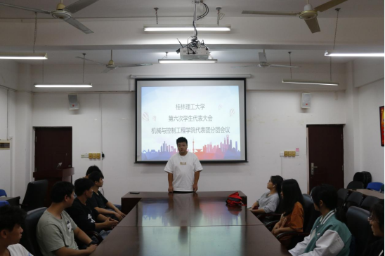 10月19日,桂林理工大学第六次学生代表大会机械与控制工程学院代表团分团会议于07215会议室召开,会议由学院团委书记于帅帅主持,学院学生代表共计15名参加了本次会议。