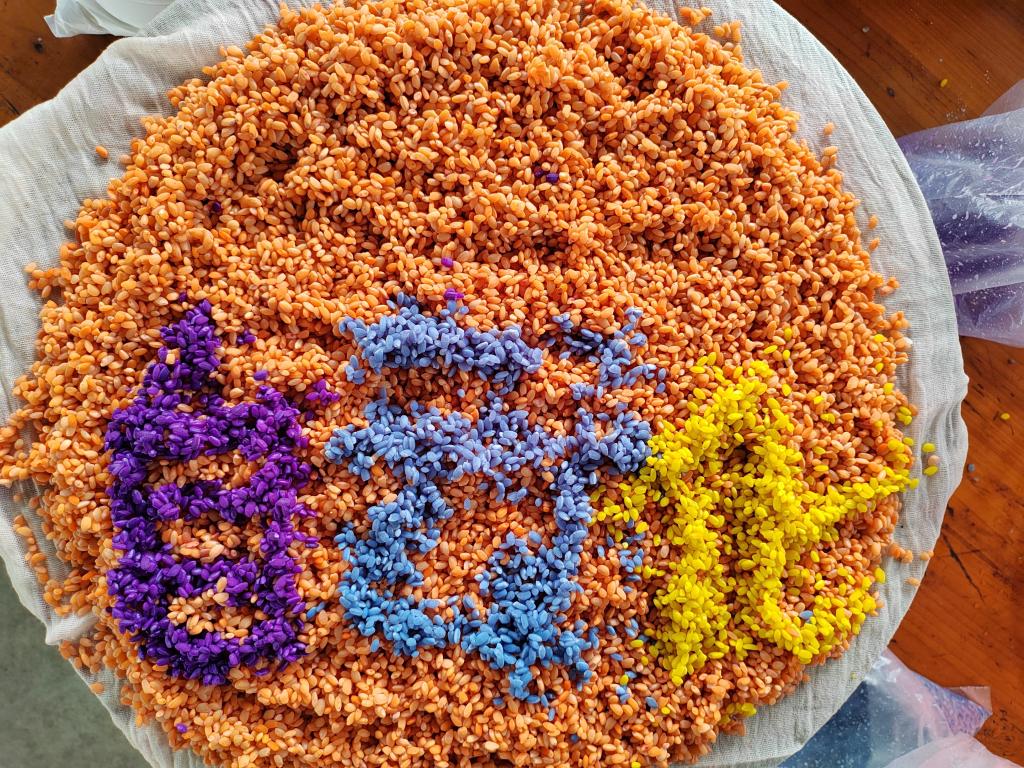同学们正在制作五彩糯米饭