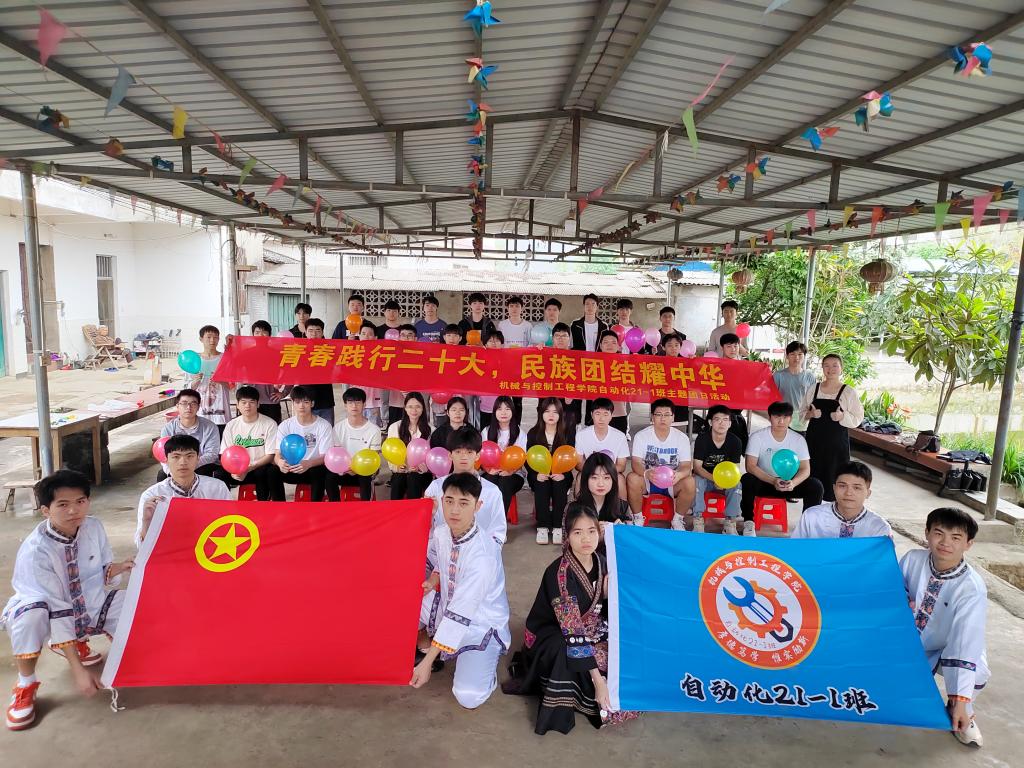 在壮族传统节日“三月三”来临之际,为贯彻落实党的二十大精神,弘扬和传承民族文化,促进民族团结进步,充分展现壮乡民族文化和民族风情,推动铸牢中华民族共同体意识在全院师生中深入人心。4月18日,学校“十佳团支部”、机械与控制工程学院自动化2021-1团支部创新主题团日活动形式,来到雁山镇大埠乡上等元村开展“青春践行二十大,民族团结耀中华”户外主题团日活动。学院团委书记黎云鹏、2021级辅导员韦小巧、自动化2021-1团支部50余人参与本次团日活动。