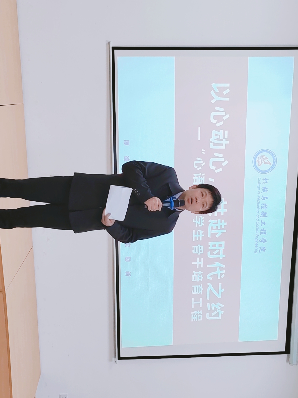 活动伊始大家一同回顾了心理协会近两年内举办的活动视频,随后学院党委副书记王迎波为开班仪式致辞。他从学生的学业和情感出发提出以下两点:第一,保持积极的情绪、和谐的人际关系、良好的人格品质。只有这样才能为实现人生价值打下坚实的心理基础;第二,提升作为一名学生心理骨干的能力。举办本次活动是为了培养一批能说、会说,将心理健康知识讲给他人的“半专家式”学生骨干,希望参加活动的学生可以坚持学习,未来让更多的同学了解心理知识,加强自我心理调节能力,在遇到困难时能及时求助专业心理咨询。