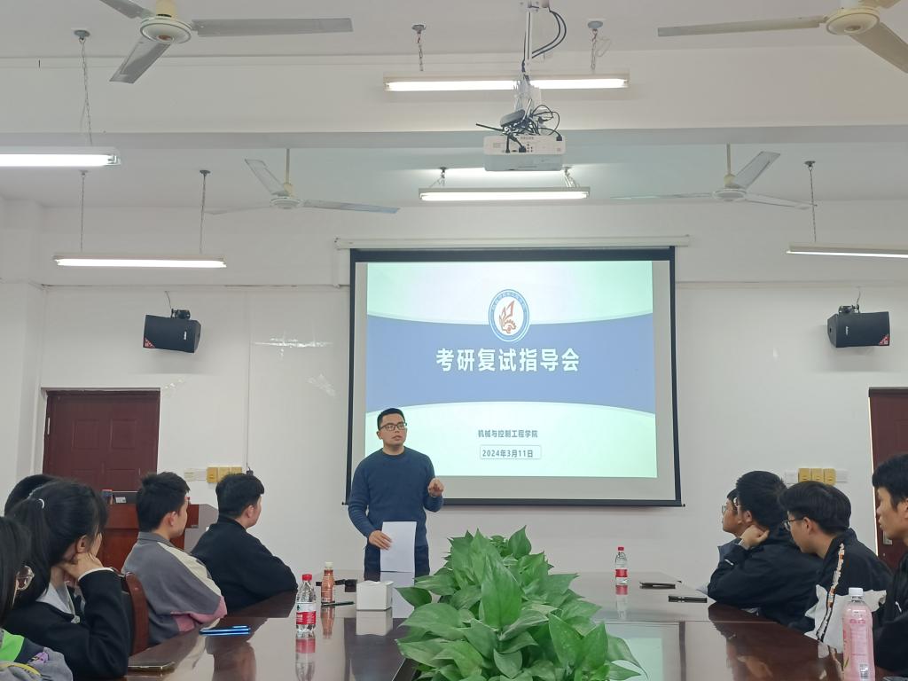 为进一步做好考研指导服务工作,帮助考研学生充分把握录取政策和复试技巧,提高考研成功率,3月11日下午,我院于07215会议室举行“全力以‘复’,一‘研’为定”2024年研究生复试指导会。本次指导会邀请自动化教研室主任石荣亮老师及张慧、李纪臻、张玉祥三名在读研究生分别为考研复试学生讲解研究生复试的各项流程和注意事项,近50名2024届考研学生参加了此次分享会。