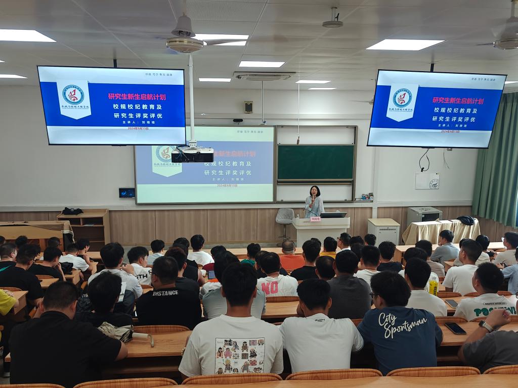 2024年9月13日,学院在7120开展了校纪校规及研究生评奖评优入学教育,主讲人为研究生辅导员刘培培,全体研究生新生参加。