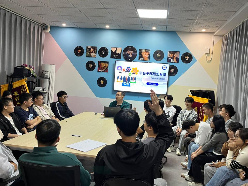首先是由郑新鹏分享的学术经验交流,他围绕“文献检索与阅读技巧”、“实验设计与数据分析”、“科研时间管理”等主题展开,分享了他在科研过程中遇到的挑战、解决策略、成功经验及失败教训。接下来是英语学习经验分享,分享人是陈芷兰,她结合“高效英语学习策略”、“学术英语写作与发表”等,她分享了如何平衡专业学习与英语学习,如何利用在线资源提升语言能力等。同时,她也分享了具体的学习材料、APP推荐及每日学习计划安排。在研究生学业规划部分,分享人屠凯科强调了明确个人目标的重要性。他指出,研究生阶段是个人学术成长和职业发展的关键时期,因此必须制定一个明确、可行的规划。在规划过程中,要充分考虑自己的兴趣、专业背景和职业规划,确保规划既具有挑战性又切实可行。他还建议,在制定规划时,要将目标分解为具体的任务和时间节点,确保每个阶段都有明确的任务和目标。在竞赛经验分享环节,分享人杨振结合竞赛经验,分享了参赛动机、团队组建、项目策划、准备过程、遇到的困难及解决方案等。他强调团队合作的重要性,以及如何在竞赛中锻炼解决问题的能力。最后一个是研会干部经验分享,分享人陈长东围绕“领导力培养”、“团队协作与沟通”、“活动策划与执行”、“学生组织管理经验”等主题开展,跟大家讲述了如何有效管理团队、策划并执行大型活动等。强调服务意识、时间管理和情绪调节的重要性。分享现场精彩纷呈,同学们纷纷举手提问,气氛热烈。