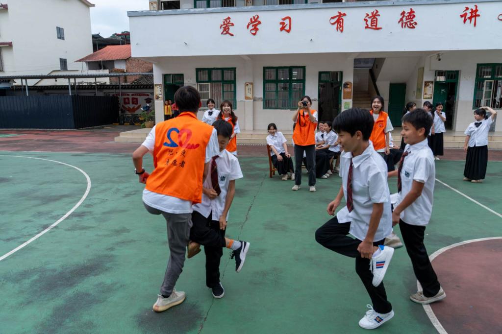 在游戏环节,志愿者们精心策划了一系列丰富多样的游戏。接力比赛中,孩子们和志愿者们混合组队,奋力冲刺,操场上的加油声、欢呼声此起彼伏。猜谜语环节,孩子们积极思考,为有趣的谜底发出阵阵欢笑。志愿者们通过游戏引导孩子们发挥团队合作精神和个人潜能,同时也增进了彼此之间的友谊。