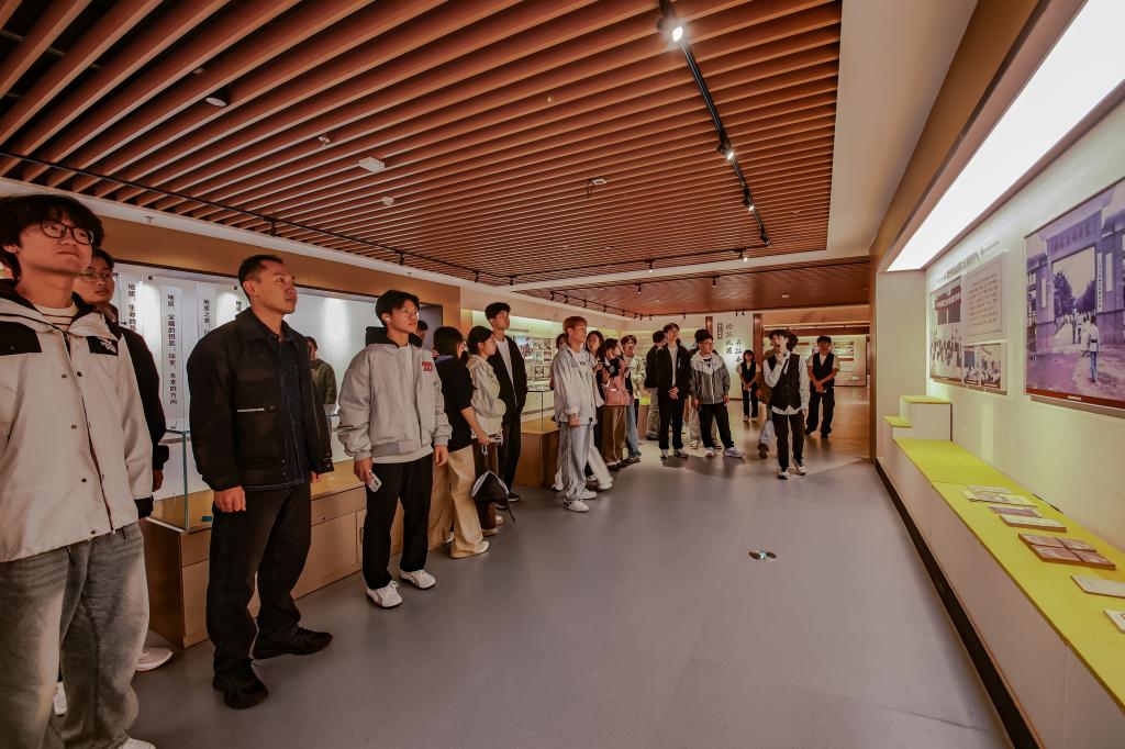 在学科建设、科研成就、校友风采等特色展区,学生们驻足沉思、细致研读,不时就展品背后的历史故事展开交流探讨。老一辈科研工作者攻坚克难的坚守、优秀校友扎根行业报效国家的事迹,为青年学子注入了强大的精神动力。