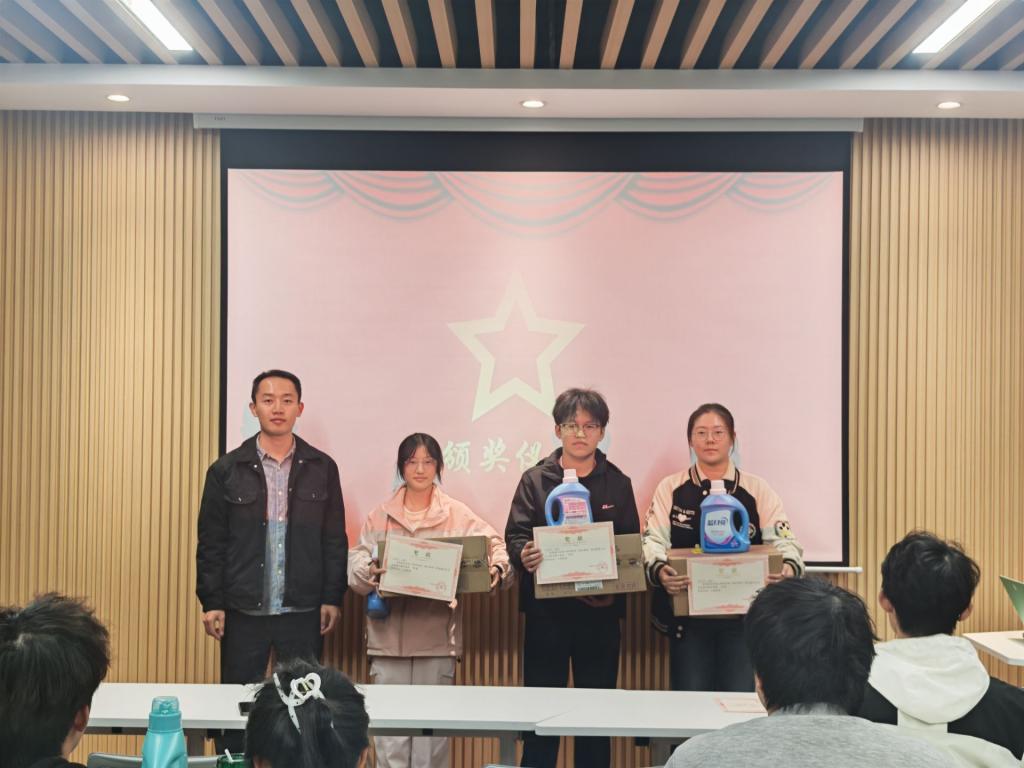 在综合评审结束后,学院于11月28日举行了颁奖仪式。仪式上,获奖寝室代表依次上台,从老师手中接过了象征荣誉的证书及实用礼品。现场掌声不断,既是对获奖寝室的认可与祝贺,也饱含着对所有认真参与、用心经营寝室集体的同学们的鼓励。