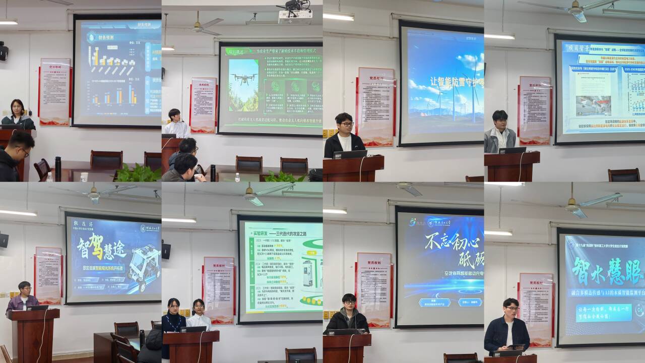 现场汇报环节,经过学院前期筛选,共8支队伍进入答辩现场,各项目均聚焦学科创新与交叉融合。项目涵盖高端材料、智慧城市及集成电路等多个前沿创业领域。路演现场,各团队通过PPT展示与现场答辩,系统阐述项目的项目背景、核心技术、商业模式、项目应用、社会价值及未来展望。评委老师们从技术可行性、市场竞争力、商业模式及商业可持续性等多个维度,为各参赛项目提出专业点评与优化建议。