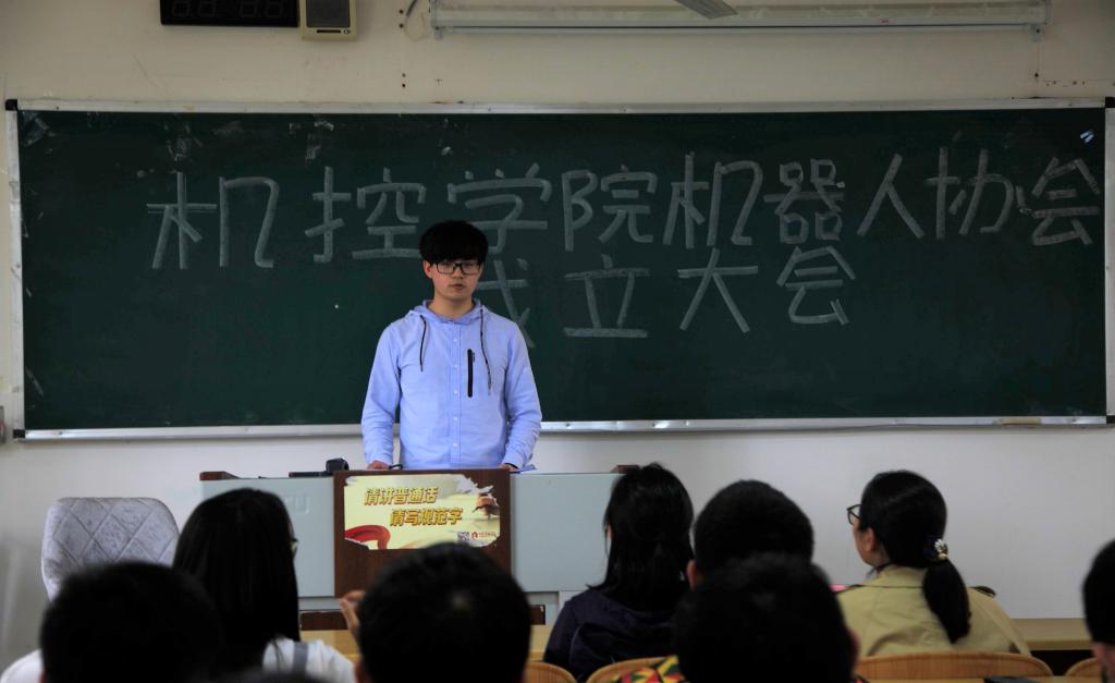 2018年4月2日12:10分,桂林理工大学机械与控制工程学院机器人协会在雁山校区05201教室召开成立大会。全体管理层成员及部分社员参与此次大会。出席大会的嘉宾有机控学院团委书记刘颖洁、协会指导老师张声岚老师以及各兄弟协会会长:院学生会主席李耀乾、团委副书记付天华、阳光心理协会会长蒙创树、科技协会会长田祥爽以及扬爱协会会长韦武谭。