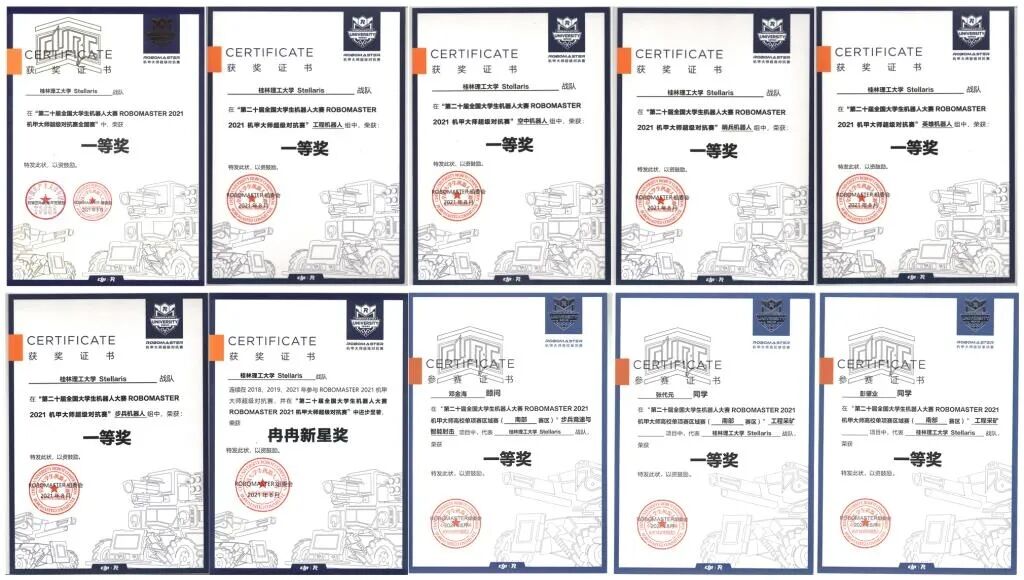 第二十届全国大学生机器人大赛RoboMaster2021机甲大师高校单项赛 全国一等奖 5项