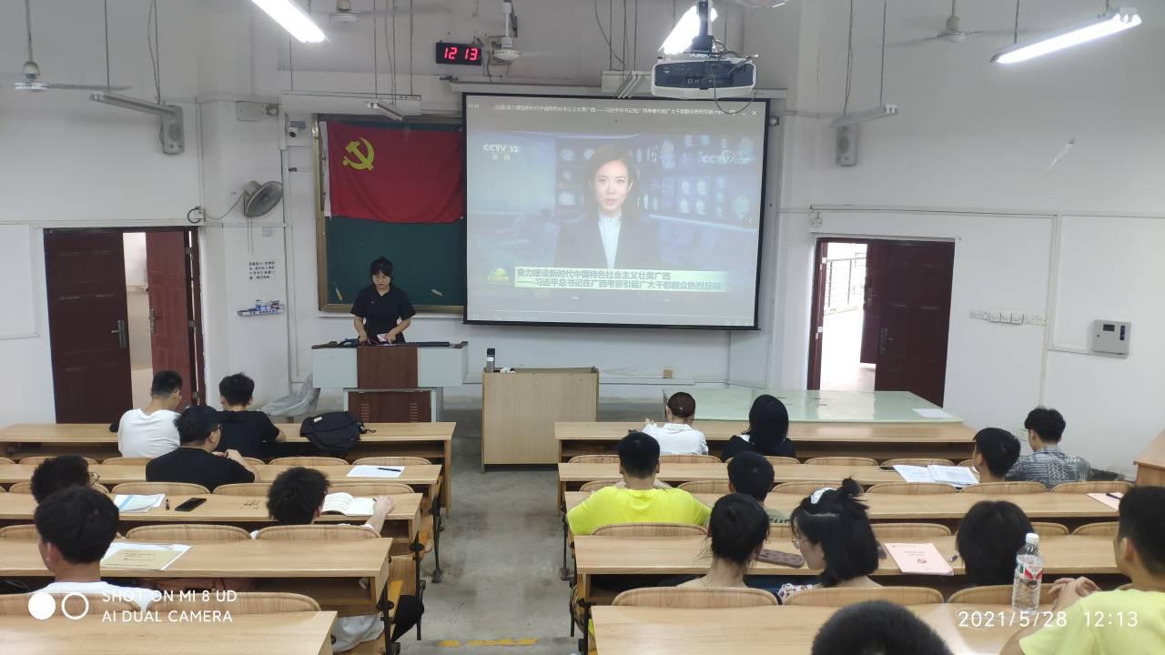 5月28日下午,学生第一党支部于07319教室开展关于“中国共产党和百年中国”和“习近平总书记视察广西时的重要讲话和重要指示精神”的学习。
