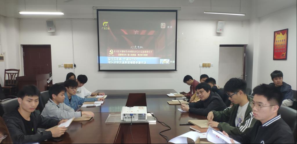 情景党课以主讲人演说、旁白及字幕等方式,再现了周恩来、韦拔群、江竹筠、黄大年、黄文秀、梁小霞等人为党为国奋斗献身的情景,展现了建党百年来无数共产党人对党忠诚、前赴后继为中国人民谋幸福、为中华民族谋复兴崇高精神。伴随着气势磅礴的歌曲《红》音乐响起,情景课堂在全体与会人员重温入党誓词的铮铮誓言中落下帷幕。支部全体党员同志观看了情景党课,随后全体党员相互交流心得体会,深刻感悟了中国共产党人对党忠诚矢志不移的高尚情怀,深刻感悟到新中国来之不易,今天的幸福生活来之不易,更加坚定了理想信念,坚定了为建设社会主义现代化强国而奋斗的决心。