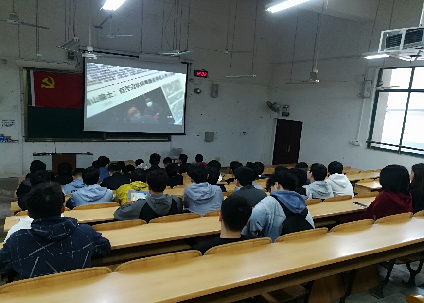 4月7日中午,学生二支部组织全体党员和积极分子在07118教室集中观看视频《榜样》和《身边的榜样》,学习在2020年这场惊心动魄的抗“疫”大战中涌现出的榜样精神。