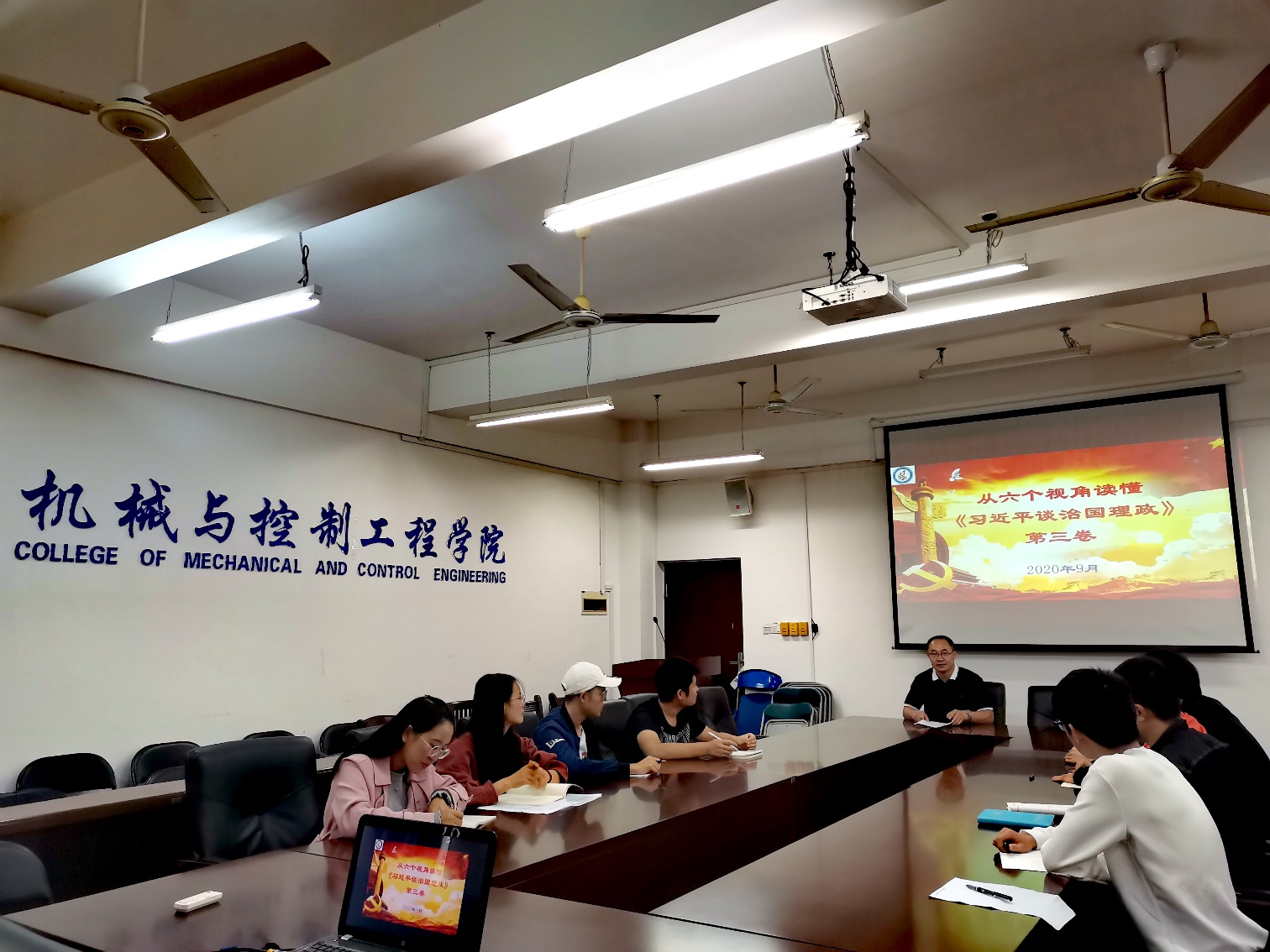 9月25日下午,学院创新基地党支部在雁山校区07215会议室举行了《习近平谈治国理政》第三卷的学习专题会。会议由支部书记刘培培老师同志主持,并邀请了学院党委书记耿俊茂同志为与会人员讲授专题学习内容。