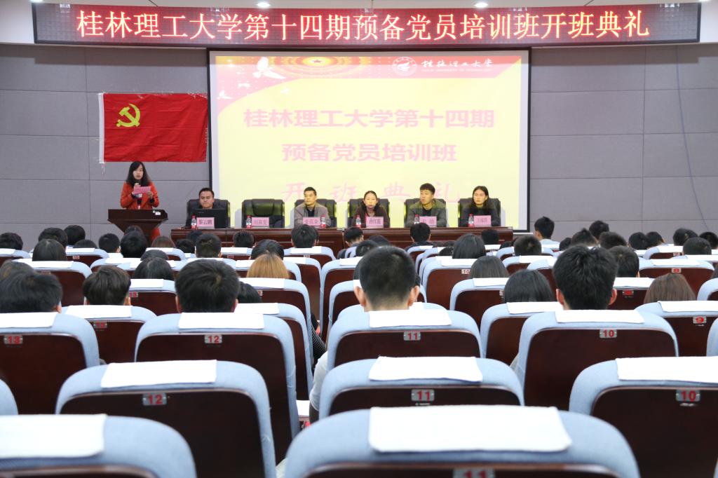 11月13日晚上,机控学院、地球学院、测绘学院、信息学院、艺术学院联合分党校第十四期预备党员培训班开班典礼在雁山校区地学院报告厅01501隆重举行。机械与控制工程学院党校校长、党委书记麦范金老师,地球科学学院研究生辅导员孙宏霞老师,测绘地理信息学院教务员刘茜雯老师、机械与控制工程学院黎云鹏老师、信息科学与工程学院教务员孟德老师以及艺术学院教务员王成圆老师出席本次开班典礼。典礼由机控学院黎云鹏老师主持,培训班共有五个学院共152名预备党员参加此次培训学习。