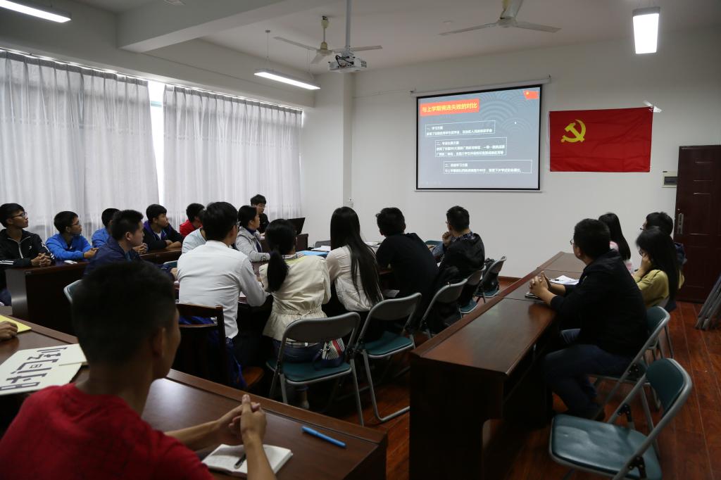 为深入推进我院“两学一做”学习教育制度化常态化,贯彻落实党的十九大精神,加强党员队伍建设,提高党员发展对象的整体水平和素质,强化入党前的教育、考察和监督,增强党员发展工作的透明度、认可度和党组织的凝聚力,10月20日下午,我院在07209会议室举办党员发展对象评选答辩会,我院党委副书记邓洁琼、党建办负责人以及各支部书记担任本次答辩会评委。答辩会由我院党建辅导员黎云鹏老师主持。