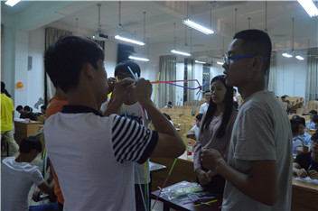 本次比赛采取竞分形式,比赛主要由“一站到底”、“机器人操作”、“步步高升”三个环节组成,每个环节都形式新颖独特,内容丰富充实。整个比赛现场,竞争与合作并存,轻松与紧张交替,热力与寂静共在。比赛过程中,各个小组充分展示了各自的脑力之强大,表现出高昂的斗志,绞足了劲,陆陆续续完成了各自的比赛项目。最后,一首“成都”将比赛带下帷幕,之后由邓老师为获奖同学颁奖。