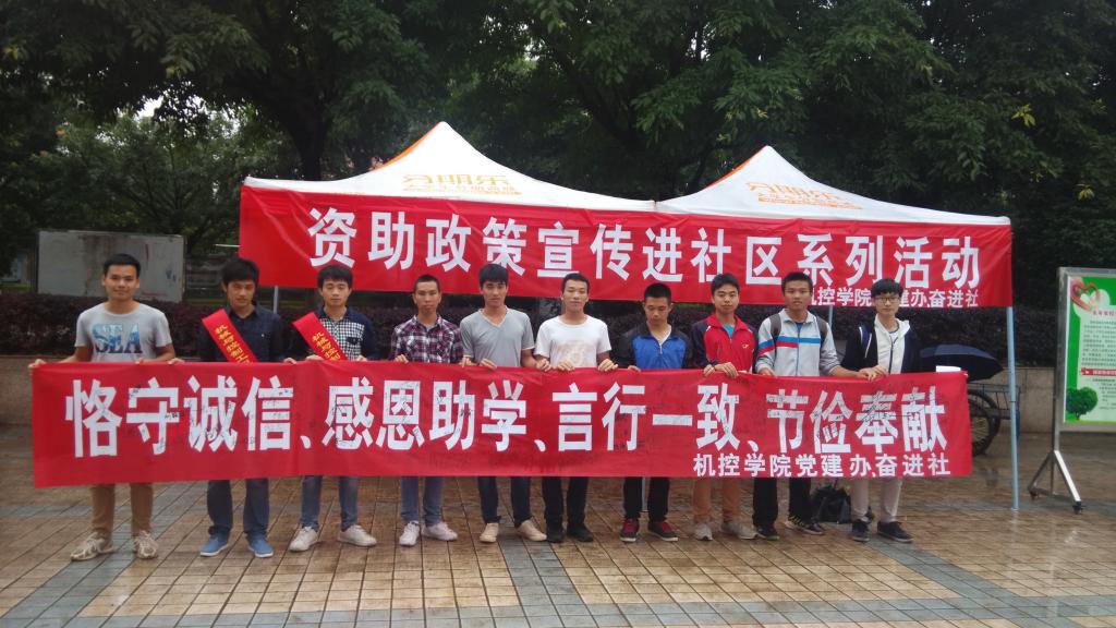 活动当天,我院党员志愿者为活动在学生社区悬挂了“政策助学,学子圆梦,诚信你我,感恩社会”,“贫寒学子求知路,奖助学金来帮助”的横幅。在活动现场,展示了我院党员制作的“资助传道重任在肩,政策助学宏愿在望”宣传展板,同时,党员志愿者耐心地向我校广大师生发放了“广西高校资助政策体系”宣传单,以图文并茂的方式向大家生动形象展示了学生资助政策的对象、标准、流程等内容,使资助政策知识更加深入人心。在“恪守诚信,感恩助学,言行一致,节俭奉献”的横幅上,我院教工党员与广大受助学生一起,郑重地签下了自己的诚信感言和姓名。同学们纷纷表示,感谢国家资助政策,今后必将发奋学习,感恩奉献,做一名诚信文明、自强不息的当代大学生。