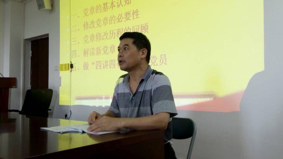 麦范金书记详细介绍了《中国共产党章程》的基本概念与相关内容,深入分析解读了党章的突出作用及重要地位,并重点分析了修改党章的必要性,并带领大家深入回顾了党章修改的历程。麦书记强调,修改党章是推进党的理论创新、实现党的指导思想与时俱进的需要,是推进党和国家事业发展的需要,是进一步推进党的建设新的伟大工程的需要。麦范金书记同时对新党章进行了详细的解读,强调要对中国特色社会主义的高度的道路、理论和制度自信。他强调,党的十八大通过的党章是全党智慧的结晶,是党富有生机活力的体现,是中国共产党章程史上又一座新的里程碑。