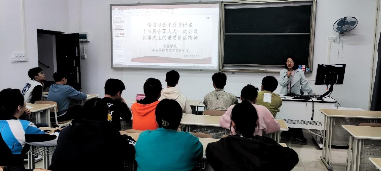 4月27日,学生第四党支部在18A207教室开展“学习习近平总书记在十四届全国人大一次会议闭幕式上的重要讲话精神”理论学习,会议由支部书记刘培培主持并领学,支部全体党员参加。