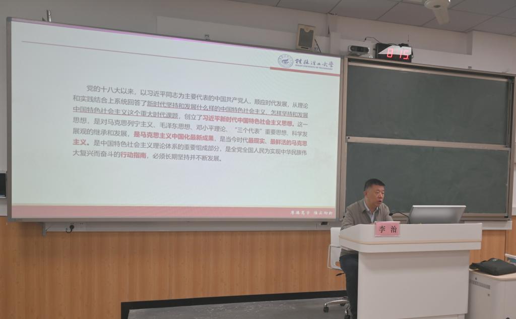 李治老师首先讲解了习近平新时代中国特色社会主义思想的重大意义、形成脉络、理论架构和主要内容。接着,他详细讲解了习近平新时代中国特色社会主义思想蕴含的的世界观和方法论,并着重对以人民为中心的发展思想作了深入阐述。他指出,坚持以人民为中心的发展思想是我们党执政的鲜明特点和重要优势,是对马克思主义唯物史观的创造性运用,也是对党的百年奋斗历程的深刻总结,是解锁中国式现代化的成功密码,它既回答了“发展为了谁,发展依靠谁,发展成果由谁享有”这一时代之问,同时指引着中国式现代化的推进过程如何永葆强大的生命力和发挥显著的优越性。他强调,发展对象培训班学员要践行以人民为中心的发展思想,就是要做到加强理论学习,坚持党的群众路线;努力学习专业文化知识,提升自身综合素质;从身边的点滴小事做起,服务师生群众;以党员的标准严格要求自己,发挥好模范带头作用。