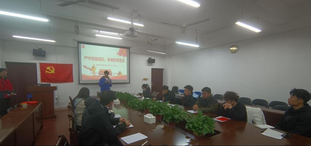 为深入学习贯彻习近平新时代中国特色社会主义思想,引导支部全体学生党员牢固树立党章党规意识,用党章党规党纪约束自己的一言一行,积极发挥好模范带头作用。学生第二党支部于12月27日在07215开展了“严守党规党纪,争做优秀党员”主题党日活动,党支部全体党员参加了此次党日活动。