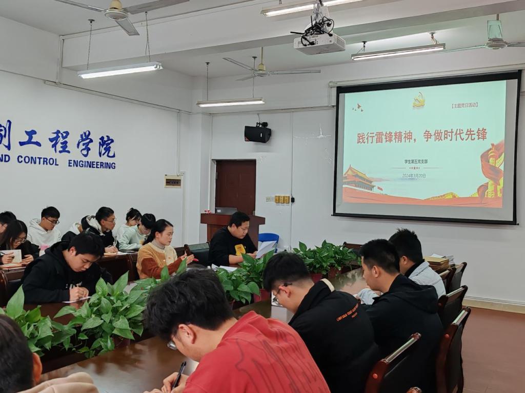 为进一步深入学习习近平总书记关于弘扬雷锋精神的重要论述,深刻把握雷锋精神的时代内涵和实践要求。学生第五党支部于3月20日在07215开展了“践行雷锋精神,争做时代先锋”主题党日活动,党支部全体党员参加了此次党日活动。