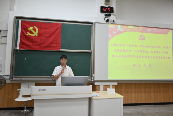 为深入学习贯彻习近平新时代中国特色社会主义思想,切实提高党员发展质量,5月10日中午,机械与控制工程学院、测绘地理信息学院、旅游与风景园林学院、外国语学院、马克思主义学院联合分党校2024年春季学期党员发展对象培训班开班典礼在05102教室举行。联合分党校教务长、机械控制与工程学院党委副书记王迎波出席开班典礼。来自机械与控制工程学院、测绘地理信息学院、旅游与风景园林学院、外国语学院、马克思主义学院共175名发展对象参加开班典礼。
