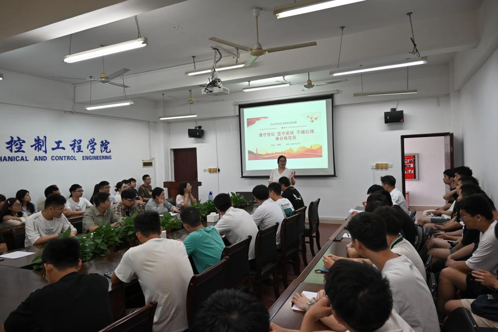 于雁南紧密联系研究生党员学习生活实际以《遵守党纪 坚守底线 不越红线 做合格党员》为题从习近平总书记关于党纪学习教育的重要讲话和重要指示精神、2024年党纪学习教育重点、学习贯彻新修订的纪律处分条例、遵守党纪坚守底线不越红线做合格党员等四个方面为大家讲授一堂内涵丰富的党课。她强调,党纪学习教育重点就是要深入学习《中国共产党纪律处分条例》,重点学懂弄通《条例》新增、修改、融合的主要内容,全面准确把握新修订《条例》的主旨要义、规定要求,自觉将纪律要求内化于心、外化于行,真正使学习党纪的过程成为增强纪律意识、提高党性修养的过程。