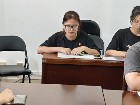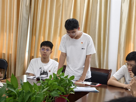 支部组织委员韦世平就自身三下乡社会实践经历进行了主题发言。从水口镇交通方式的变迁,丰富的水果资源,以及从赤苍藤科研合作社到线上线下的完成生产销售流程展现了中华人民共和国成立75年以来一个边陲小镇的巨大变化,展现了国家乡村振兴的成果。之后陈欣辉、李赞航、庞子龙、刘佩婷同志依次发言。