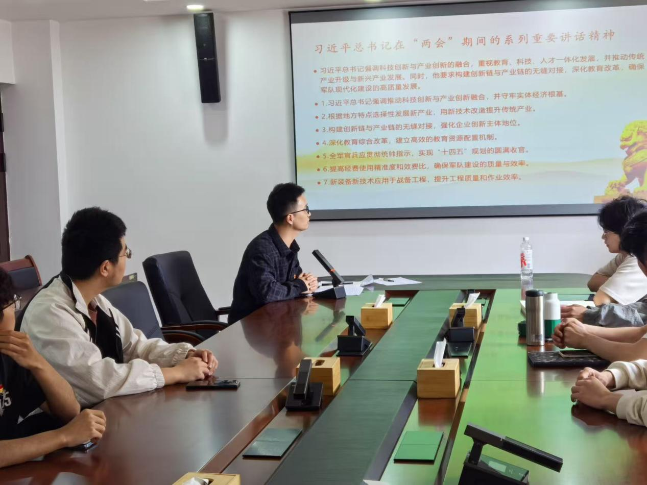 会上,党支部书记刘威同志领学了习近平总书记在两会期间的系列重要讲话精神和2025年政府工作报告。他强调,支部要学习好、宣传好、贯彻好全国两会精神,这是近期重要政治任务。作为党员,我们应该准确把握全国两会核心要义,自觉做到学深悟透、笃定践行。将全国“两会精神”融入到学习工作实践中,围绕学院中心工作,在思想上、行动上为学院的建设与发展贡献自己的力量。在党支部的日常工作中,我们要以全国两会为契机,通过组织专题学习、研讨交流、社会实践等形式,引导党员深入学习两会精神,将个人成长与国家发展紧密结合。我们要鼓励积极参与两会精神的宣传与实践,发挥学生党员的先锋模范作用,带动身边更多同学关注国家大事,为实现强国建设、民族复兴的宏伟目标贡献青春力量。相信在全国两会精神的指引下,我们一定能够凝聚起更强大的奋进力量,书写属于新时代青年的辉煌篇章。