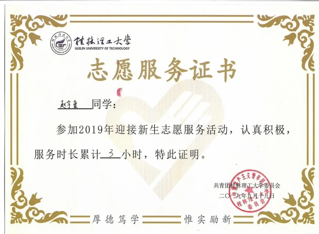 多次获得“三好学生”、“优秀学生干部”等荣誉称号;曾获国家励志奖学金3次、桂林理工大学特等奖学金2次、桂林理工大学一等奖学金1次。