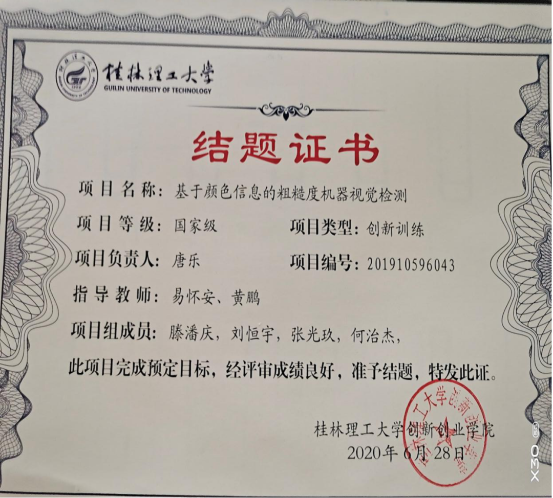 【国家级大学生创新创业项目】:基于颜色信息的粗糙度视觉检测 ,项目发表四篇论文