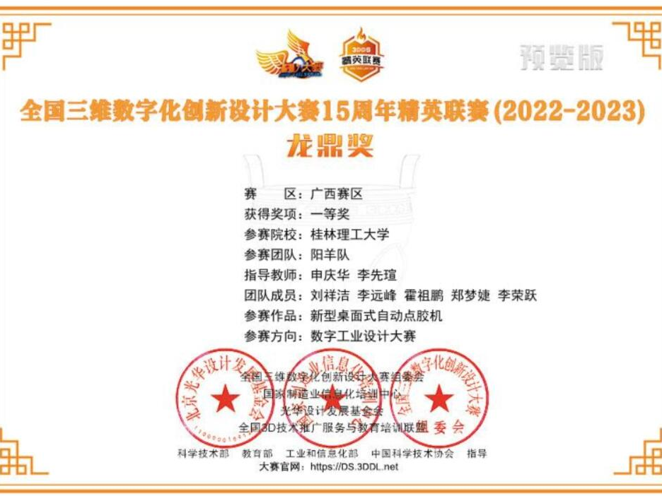 1、2023年5月,全国三维数字化创新设计大赛十五周年精英联赛省级一等奖;