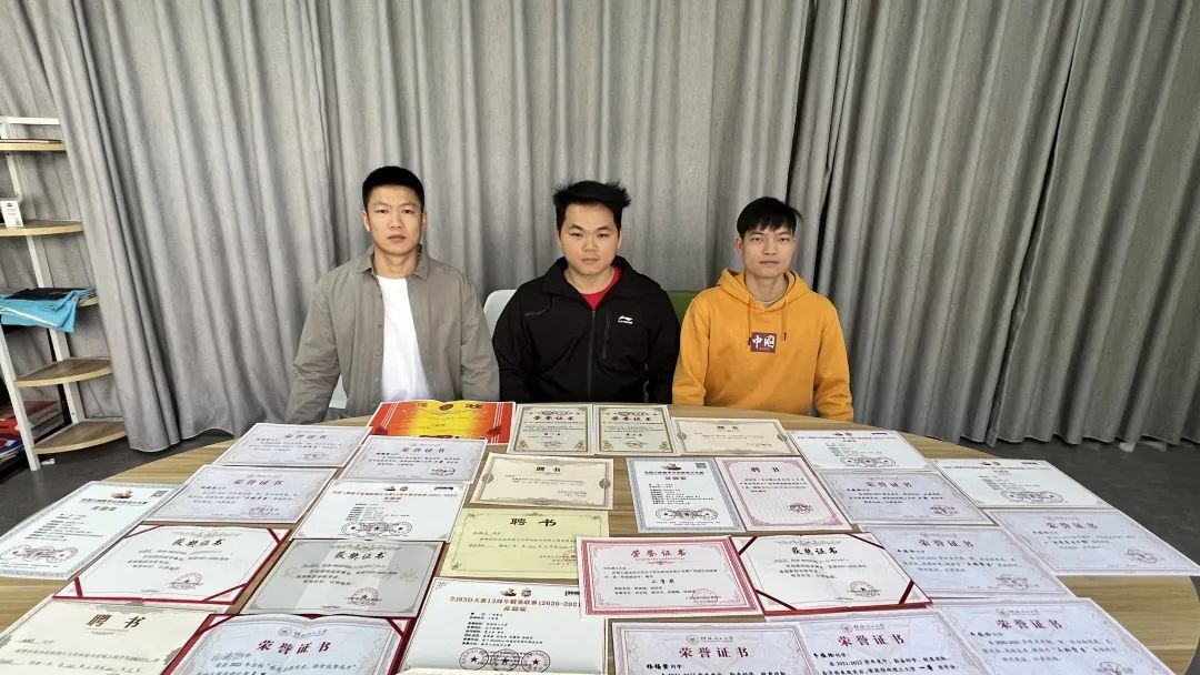 三位退伍复学大学生在校期间所获荣誉证书(从左到右依次是牛依伦、杨锡坚、谢君华)